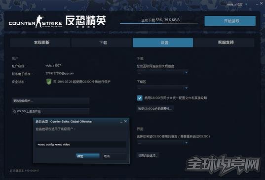 然后在国服CSGO的登录页面中选择设置选项,在启动项中加入 +exec config +exec video 指令即可