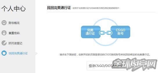 *绑定原有Steam账号办法:点击01方块的登录页面,注册完美世界账号后点击个人中心的“找回完美通行证”页面进行绑定
