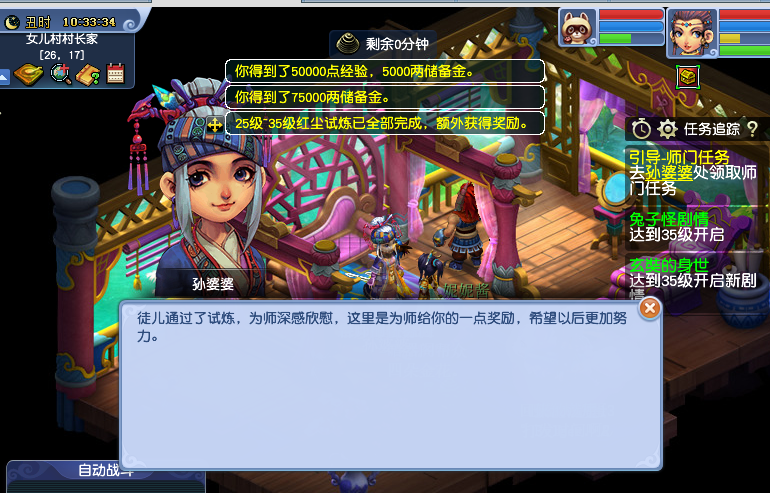 升级最主要的西游记单人副本,那个升级很快,期间还接触了下口袋版,后面发现那个就是烧钱烧点卡的,你花钱可以体验很好的回报。57级时其实已经差不多有点稳定了,捉鬼偶尔也有人带带你,遇到好心人也不要你钱。