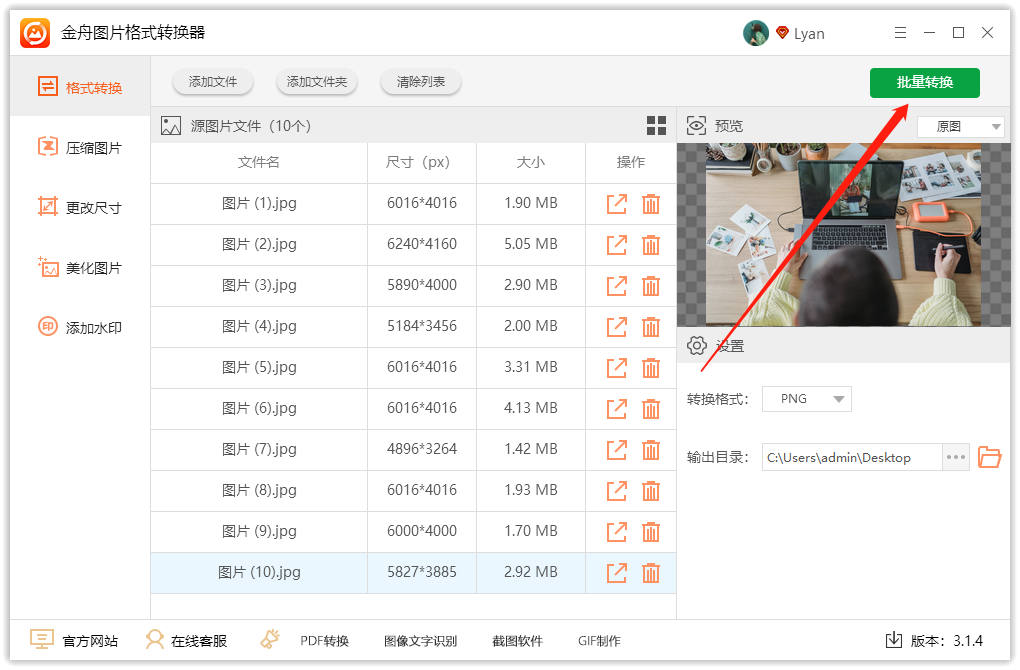 第四步、最后一步,直接点击右上角的“批量转换”即可;