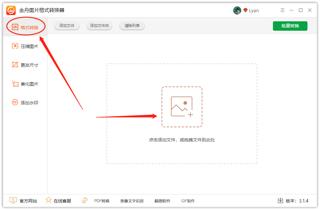第一步、双击打开软件,在这里点击选择需要的“格式转换”功能,然后再将图片添加进来,可以批量添加哦;