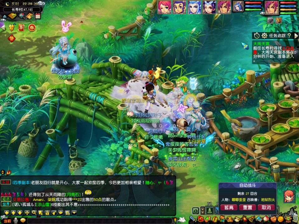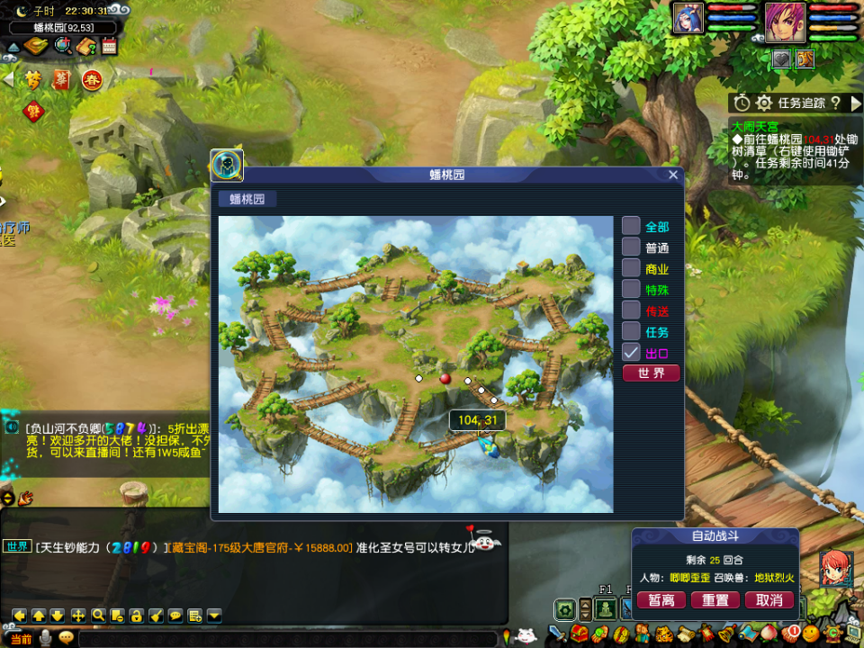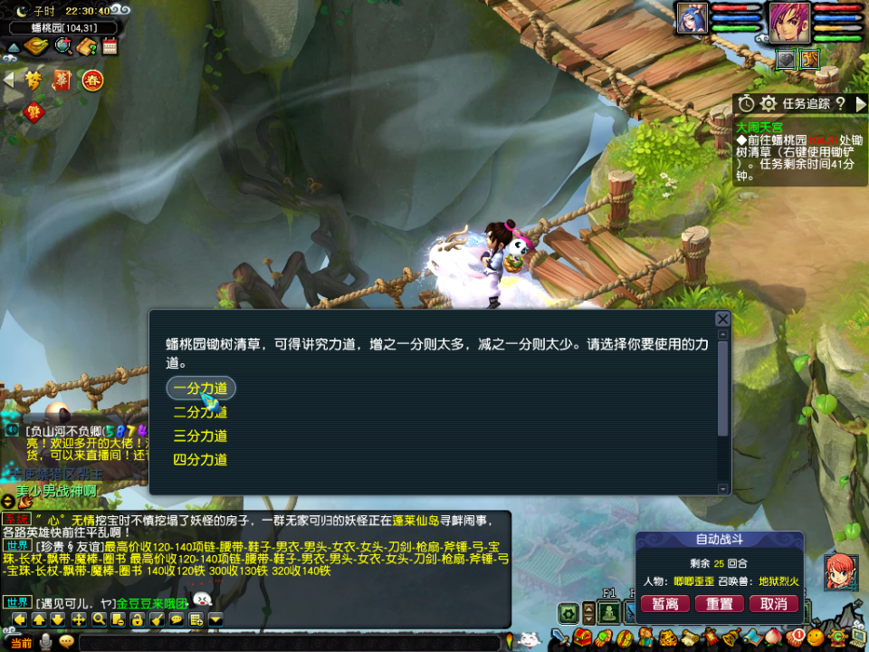 打完以后到蟠桃园地图,找到4个NPC完成4个不同的任务,分别是答题、猜拳、战斗和点击,每个队伍每种任务只能完成一次,所以需要两个队伍完成以后这一环才结束,就猜拳看运气,其他没什么说的。