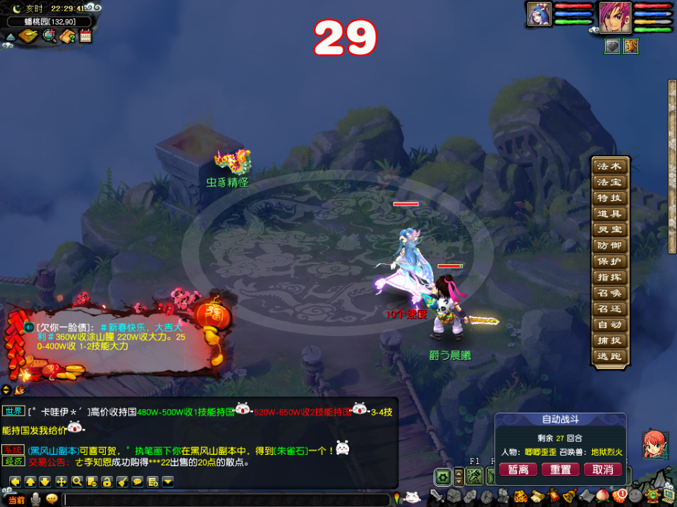 除虫:到指定坐标点树木,切入战斗,怪会直接楚楚可怜,可封印,400速度以上比怪快。