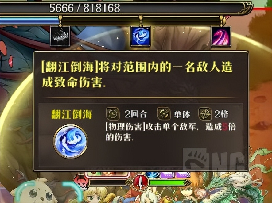 我们来看三技能翻江倒海:对单个敌军造成五倍单点。
