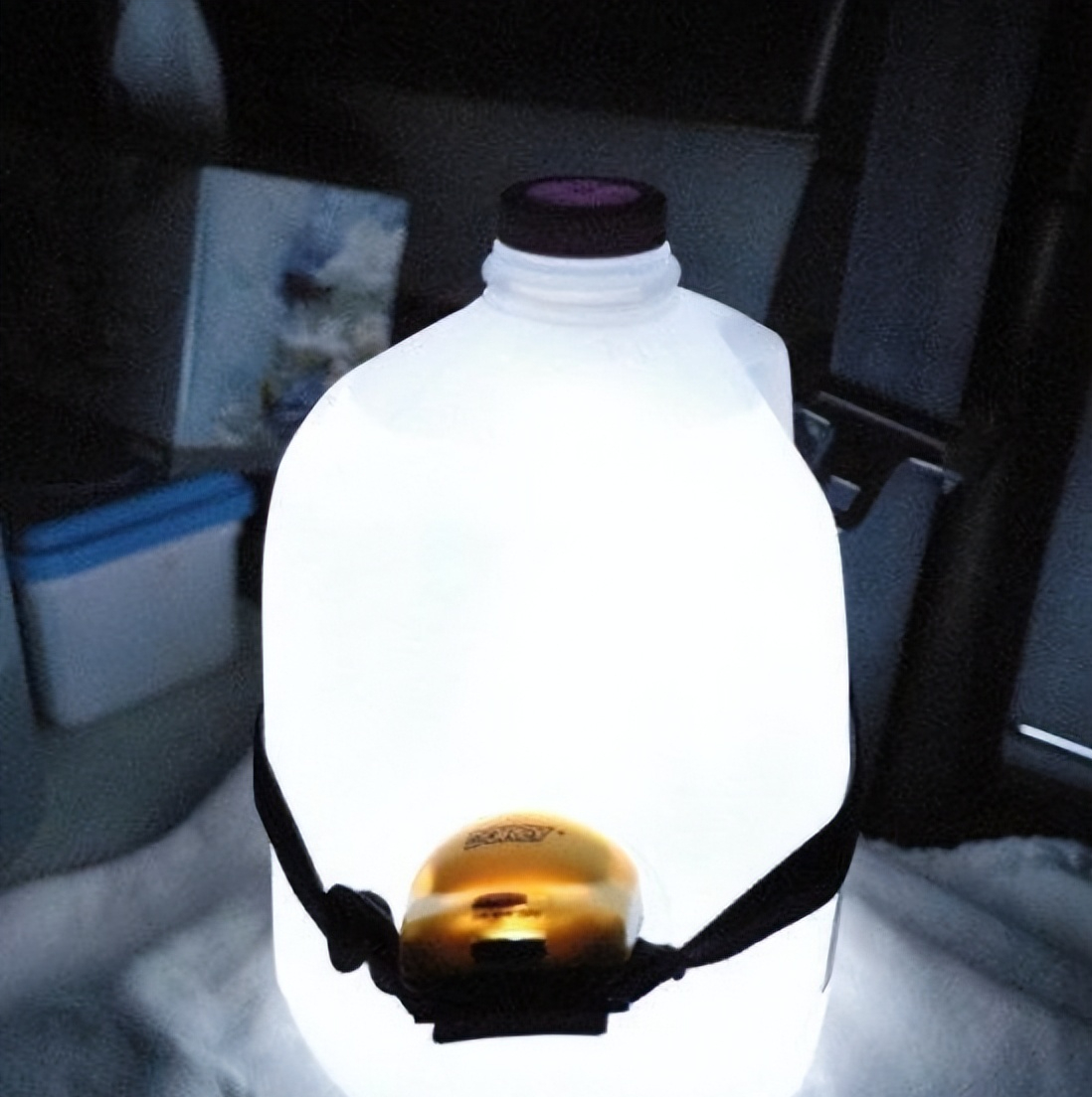 将一个朝内的等绑在装满水的水壶上,即可得到一个明亮的夜灯
