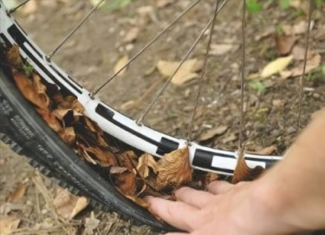 如果自行车胎漏气,将树叶填充到轮胎中可带你到你想去的地方