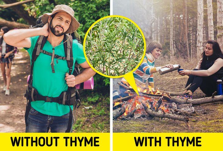 将百里香叶扔到火上,它可以你提供 85% 的防蚊保护,时间长达 90 分钟。