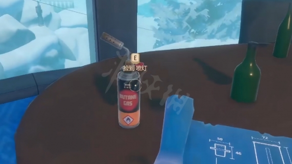 喷灯在冰岛最大的那间两层楼的冰屋中可以找到,需要完成冰岛的第一个接电任务。进到冰屋之后在第二层的台球桌旁边的小圆桌上就可以看到喷灯,旁边还有一张高级生物燃料提炼机的蓝图。