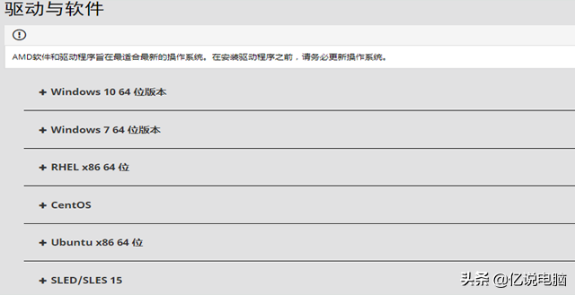 2.AMD显卡,百度AMD官网,或输入网址www.and.com,进入到AMD的官网,点击网页上方的驱动与支持,进入驱动下载页面,我们可以直接在下拉框里选择显卡的型号点提交,也可以像英伟达一样利用筛选功能筛选出我们的显卡再提交。然后再选择系统版本,再选择不同日期的驱动程序,选好之后点击下载,待下载完成后同样得到一个.exe的应该程序,双击打开,下一步下一步安装就可以了。