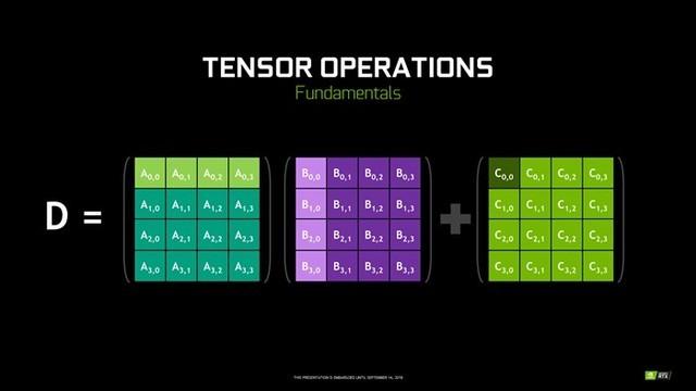 Tensor在中文里面的意思就是张量,区别于我们常见的标量(0维)、矢量(1维)、矩阵(2维),张量拥有3维或者更高维,本质核心上就是一个数据容器,可以包含更多维度数据。其主要应用就是目前大火的AI——深度学习,这里面主要会用到FMA矩阵融合计算,而TENSOR CORE的工作方式天生就适用于这种计算。