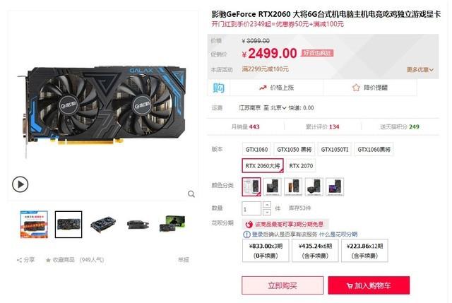 影驰RTX 2060 大将时至618,影驰RTX 2060 大将显卡已经开始了优惠活动,原价2499元参与减100元活动,只需要2399元即可到手,喜欢的朋友不妨关注一下。