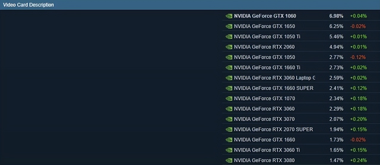 那么下面就让我们先看看Steam最新的5月硬件调查吧,在显卡榜单让人有些意外,我们取前15名来看。虽然GTX 1060依然稳坐榜首,但中高端显卡的增速是最猛的。