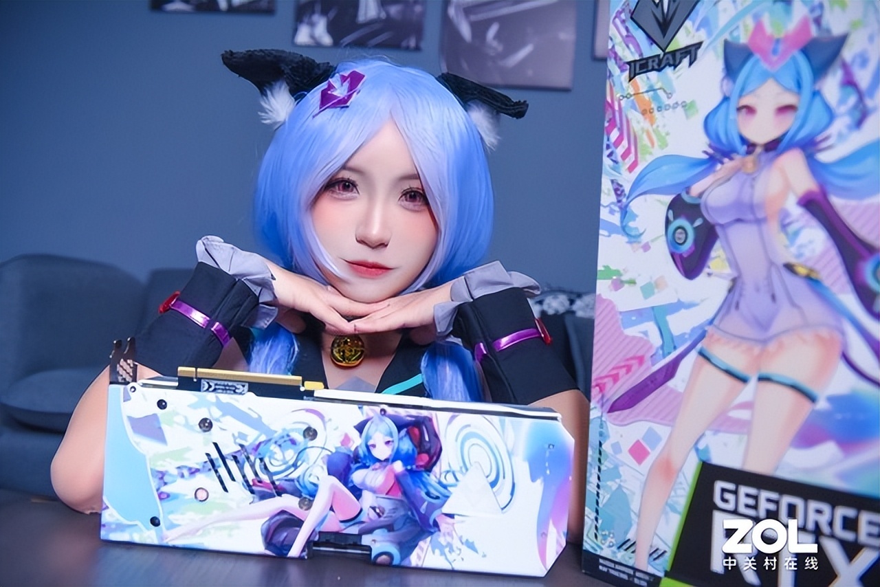 在目前显卡性能越来越趋同的时代,大部分用户购买显卡外观才是关键,铭瑄这款瑷珈限定版的外观采用了非常大胆的创新,正面以蓝白为主色调清新靓丽,背板喷涂二次元瑷珈形象。