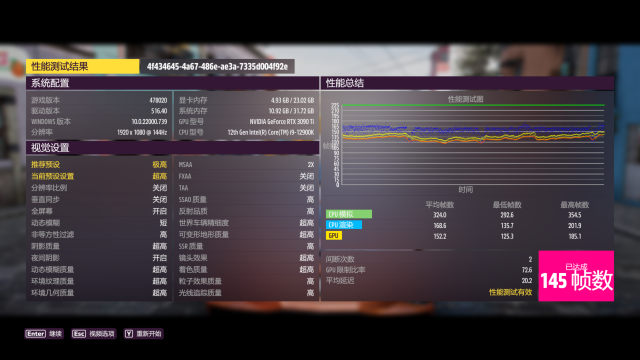 我们先来看看两款比较新的赛车竞速类游戏《极限竞速:地平线5》与《F12021》,其中《极限竞速:地平线5》我们选取的是BenchMark测试结果中的CPU渲染项,而《F12021》选取的是游戏平均帧数。