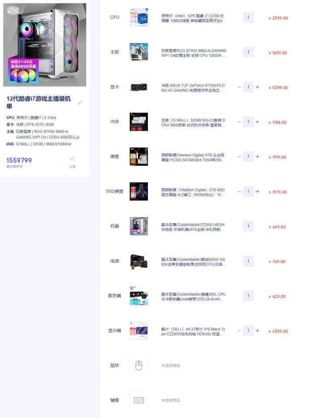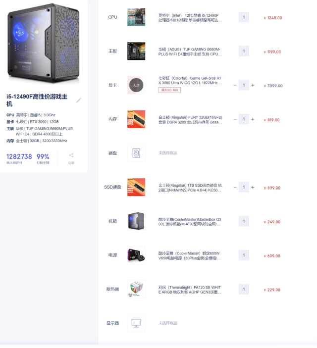 配置点评:i5-12600K定位的处理器装机追求高性价比,所以大家在装机的时候更多的选择高性价比配置为好,同时显卡我们这里先用的是RTX3060Ti在内容创作方面有一定的加持,若预算有限可以考虑更换RTX3060。