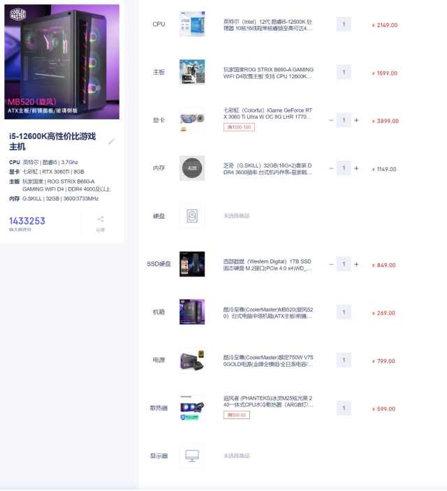 当然若你是追求更高性价比的游戏玩家,那么我们建议你直接把处理器更换成i5-12600KF,这样看似处理器上省下了三四百,但整机的成本更低,更符合游戏玩家的需求。或者省下来的钱直接投入到更大容量的M.2固态硬盘上,我们就有更多容量来装游戏了,对不。
