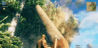 游戏中的许多区域植被茂密,被砍倒的树木偶尔会被其他树木卡住。这是大自然的仁慈,亦是一种警告,若是贪婪的玩家一意孤行继续伐木,便会被失去支撑倒下的树木压成肉酱。