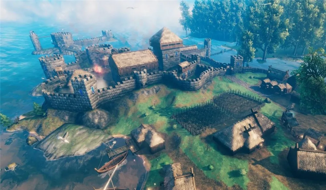 在很多生存游戏中,对家居美学的追求往往是玩家个人的进阶需求,而与游戏机制无关。游戏虽然会提供强大的建造和装饰功能,但通常不会有玩法机制上的联动——你建造归建造,不建造凑合也没事,造好了是你个人追求。而《英灵神殿》从游戏机制层面解决了这个问题,因为家具能带来实打实的数值加成,所以玩家会倾向于在家中放置一些装饰性家具。又因为游戏的资源和建造系统非常简洁,不冗余,初期选择余地很少,玩家反而能较为容易地搭建出一个北欧风格的屋子,并带来一种强烈的归属感。听上去很反直觉,反而是那些不怎么喜欢建造的玩家,能在《英灵神殿》里获得建造的正反馈,从而促使他们在后期建造规模更大更漂亮的城堡。
