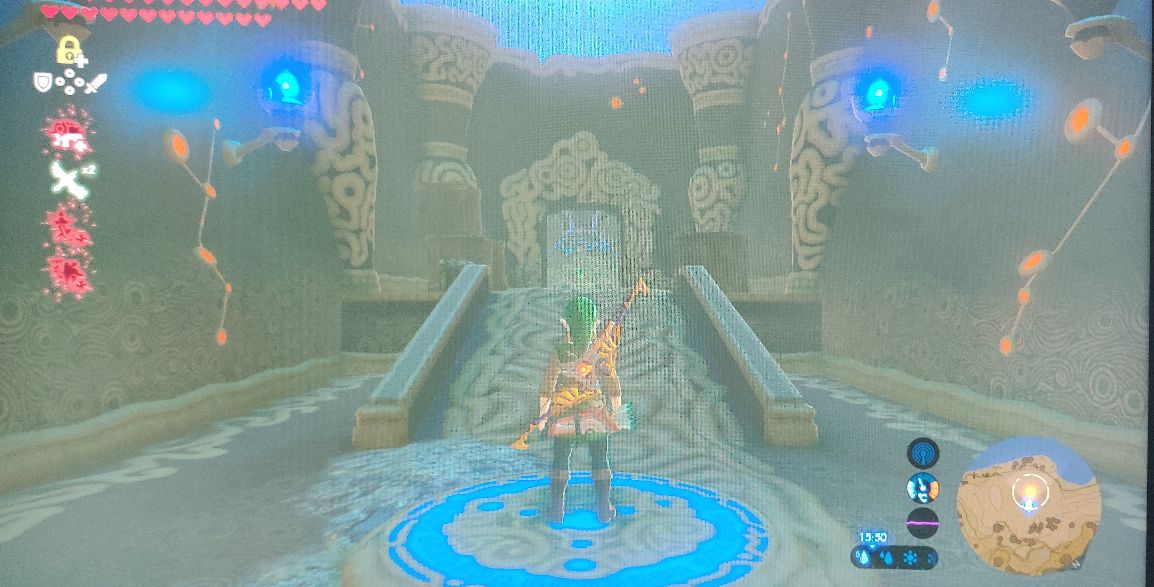 拿上它之后你可以一击必杀怪物,但是林克也会变成只有半颗❤,所以怪物对你也是一碰就死(有情提示当心蜜蜂),然后拿上武器清掉神庙附近的四个据点会有四座神庙,神庙打完之后会提示去四个神兽哪里领取接下来的任务。