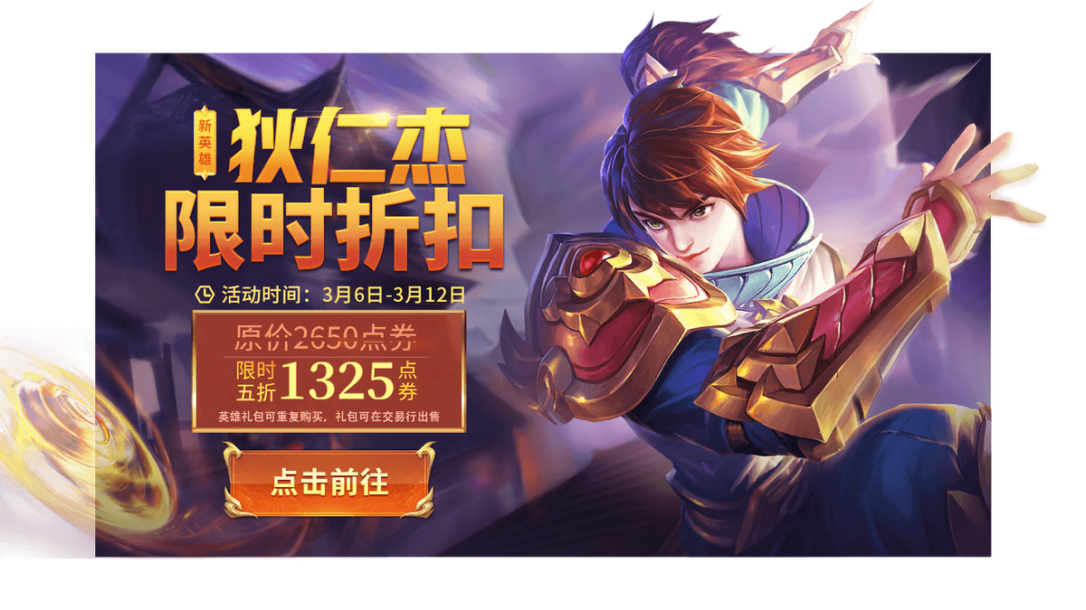 不止这样!原本端游上金币购买的英雄“狄仁杰”(和王者荣耀一样,也是历史人物大杂烩)在手游上点劵售卖,五折售价132.5元!