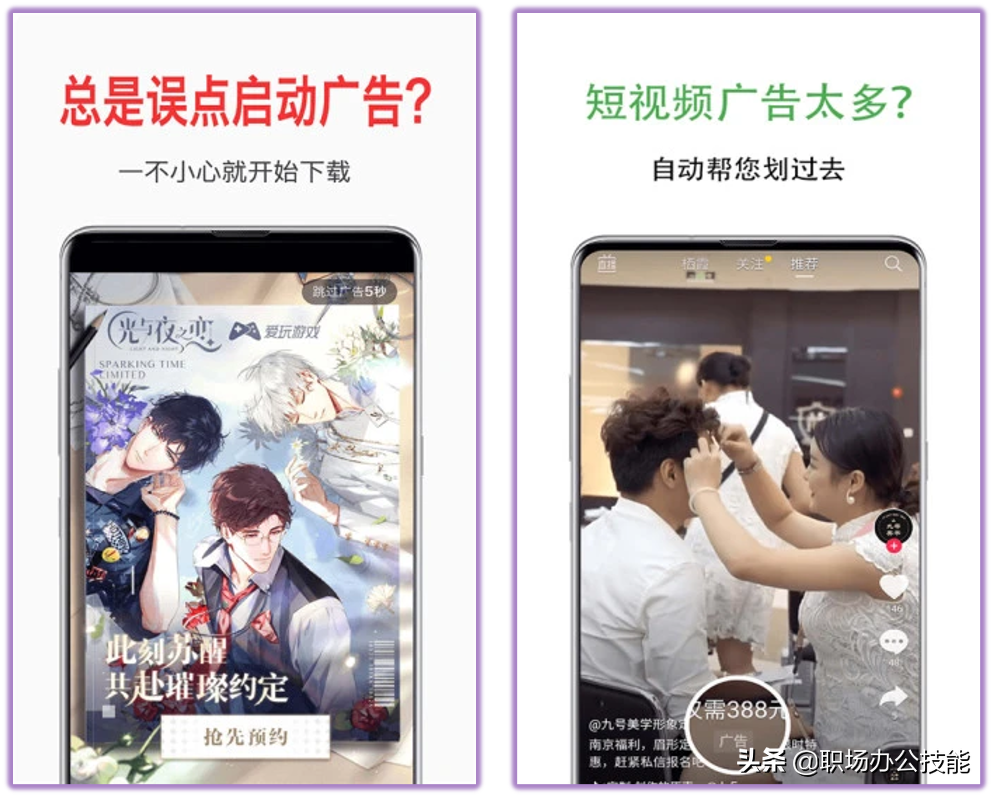 每次打开软件,总是遇到各种开屏广告,在焦虑中等待广告结束,太浪费时间了。有了这个App就可以帮你自动跳过各种广告,打开软件后开屏广告直接快速跳过,刷视频的时候有广告,也可以自动划走,非常方便!