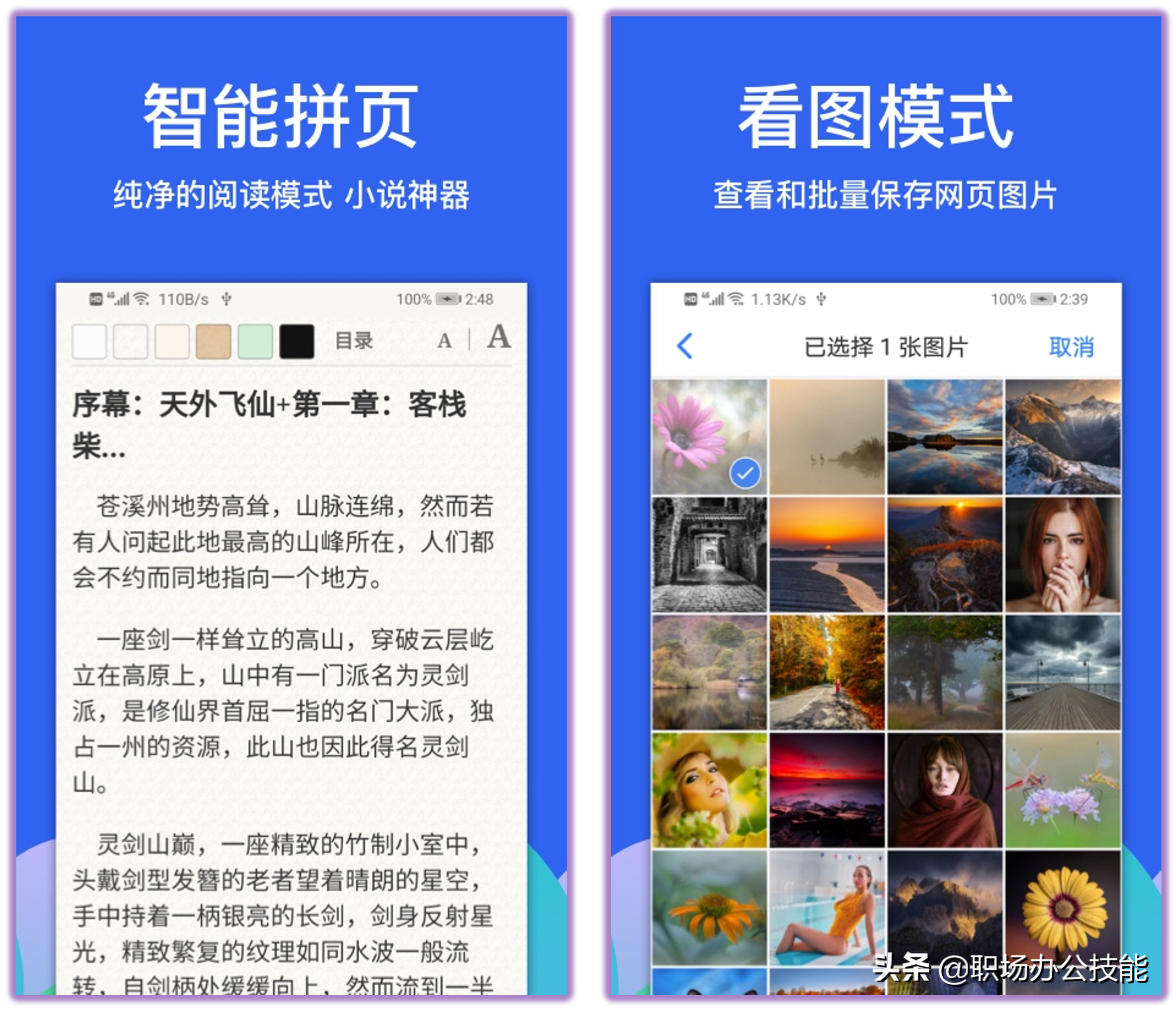 这是一款无推送、无新闻、无广告的浏览器,功能十分丰富,阅读电子书、网页时,可以智能拼页无需跳转,支持批量保存网页图片,而且内置的视频播放器,最高支持16倍速,拥有全面的视频功能,使用起来非常舒适。
