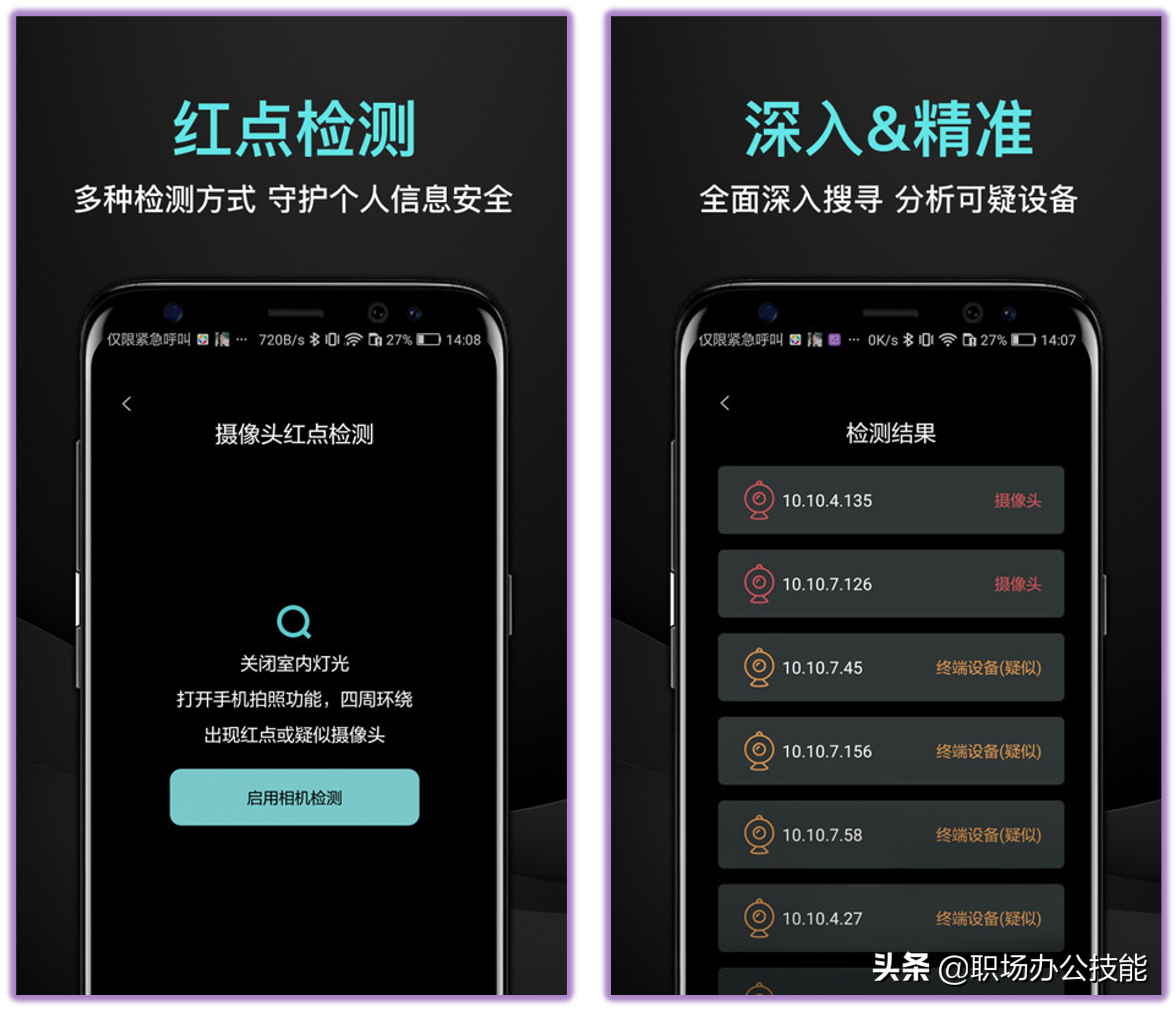 当我们在住酒店或租房的时候,总担心房间里有隐形摄像头,导致我们的隐私暴露。而这款工具可以用多种不同的方式,检测周围的偷拍设备,你可以用WiFi检测、摄像头扫描功能,更加全面检测可能存在的偷拍设备。