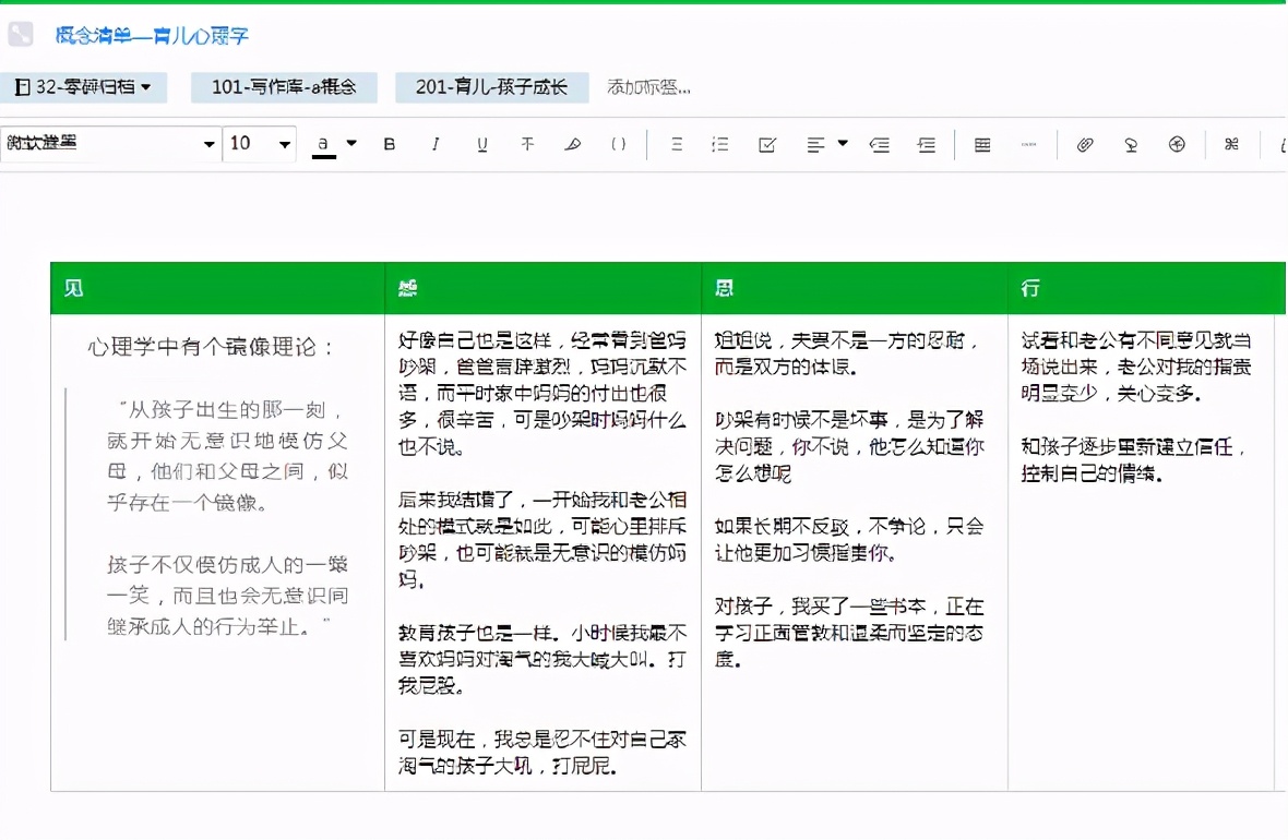 了解这些之后,再使用“标签+标题+见感思行表格”来建立笔记,我们收集的知识就可以沉淀下来了,查找、调取都很方便。
