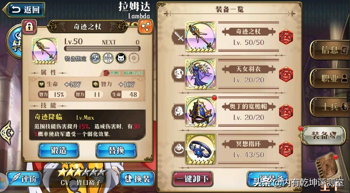 梦幻模拟战手游拉姆达作为后面逐步推出的SSR英雄,由于大家的阵容相对固定,并且很难随便该换阵营,导致拉姆达一直在被很多人忽视,但其实这位SSR的AOE能力在梦战手游中可以称为AOE第一人,与大公主一样属于AOE洗脸一般的存在,随后兰迪乌斯可以开启收割模式,但有一个条件限制住了拉姆达的发挥,那就是需有西格玛开攻击羁绊,否则伤害会少很多。