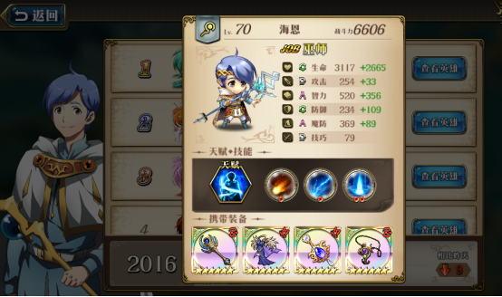 在海恩的人物传记中,在旅途的终点,海恩成为了大陆上最强的魔法师。在游戏中,这点同样很好的体现了,相比其他的法师,海恩预热比较慢,想要发挥作用需要依靠“累积的知识”天赋准备几回合。但是一旦叠满buff后,获得智力提升加成的海恩甚至可以在属性值上,达到游戏里智力前三的级别。