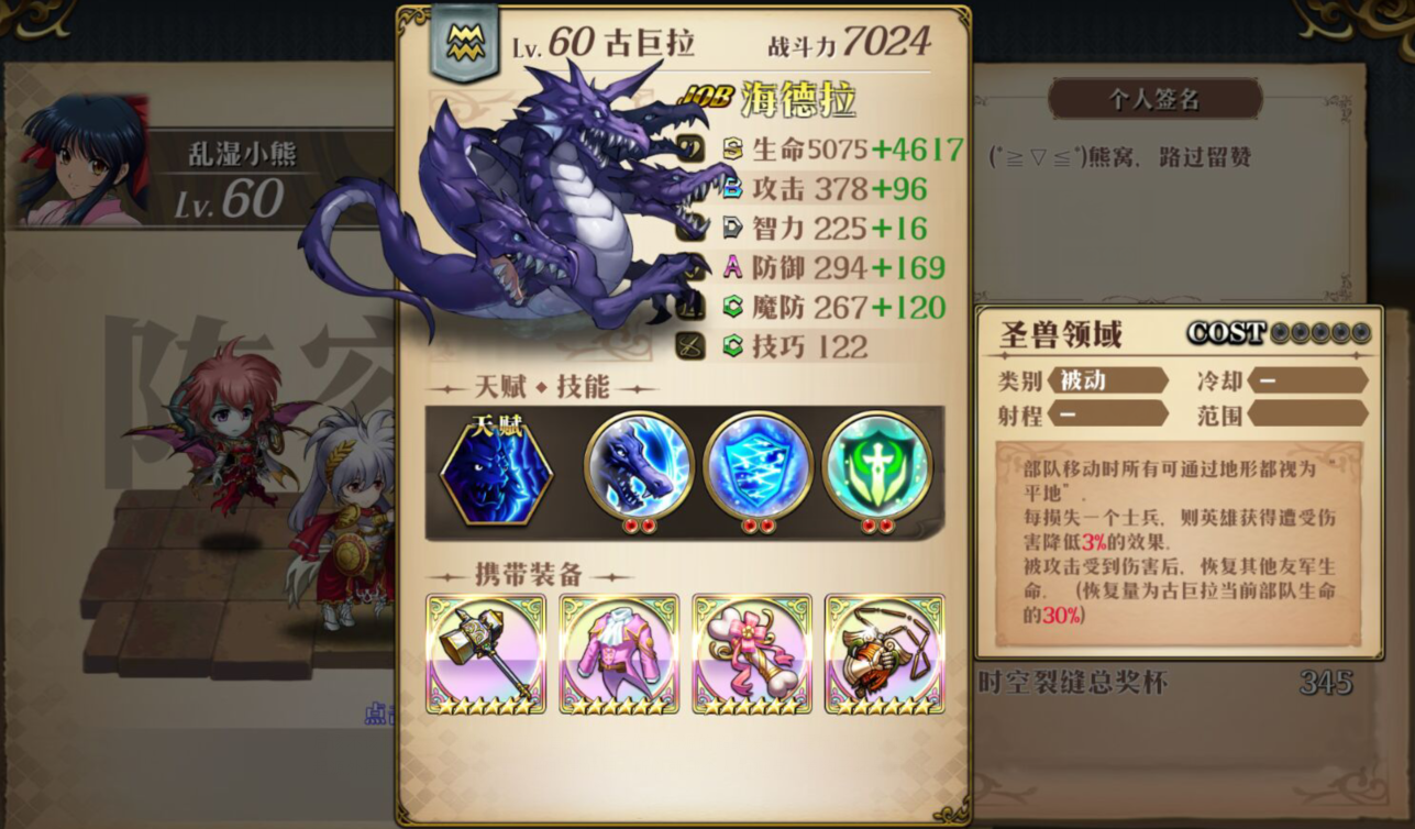装备和骑狗不太一样,武器正义誓言,头用专属头,饰品用勋章,衣服选择华击团制服,可以破魔女兵种的效果。