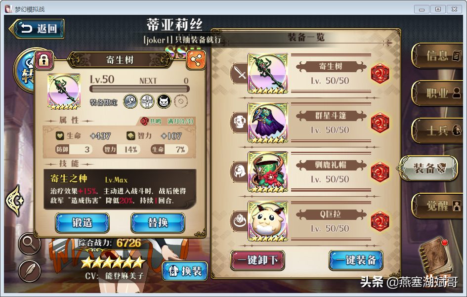 大树是为了提供全队的增益效果,但练度不够时治疗量会感觉不足。