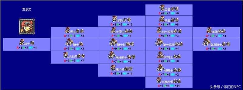 先来一张《梦幻模拟战2》艾尔文的转职路线图