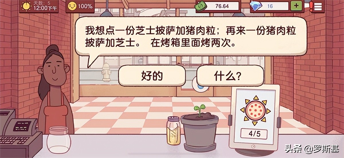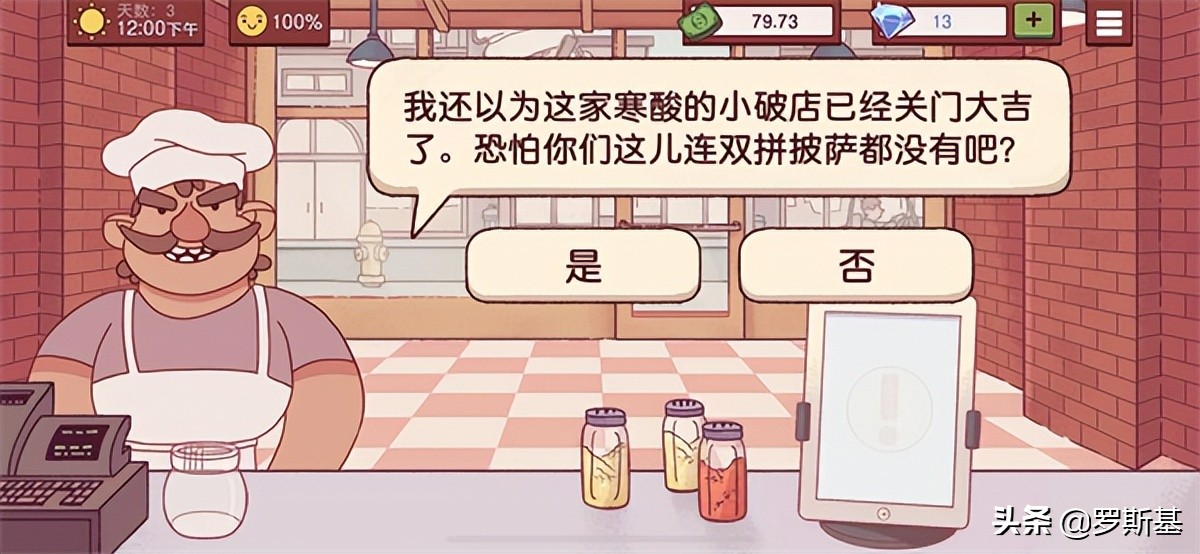 除了经营元素外,《披萨》中还带有简单的剧情元素。例如开局对手会来质疑你的水平,说你这也不会,那也不会,非要教教你。于是乎我们就学会了各种披萨的制作方式及流程。