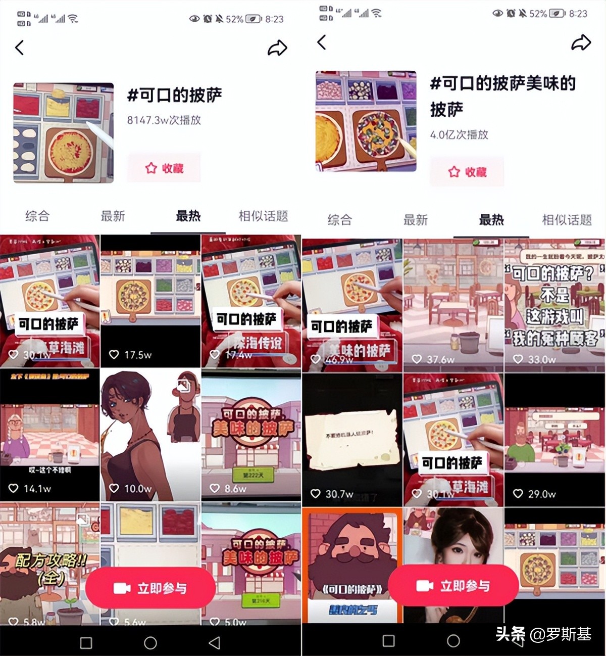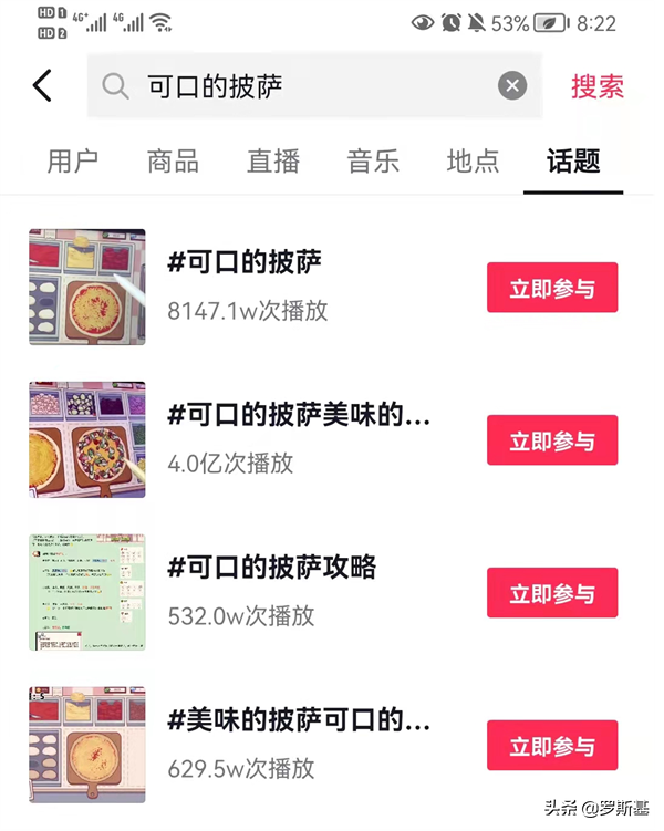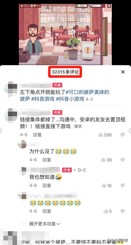 截至2022年4月12日下午,“可口的披萨”和“可口的披萨美味的披萨”两个游戏话题在抖音的视频播放量分别是8000万和4亿,直接带动了正版游戏的“又一春”。