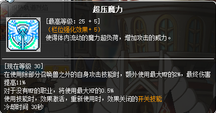 超压魔力,提高终伤的一个开关技能,在前期格子不够的时候 不推荐带