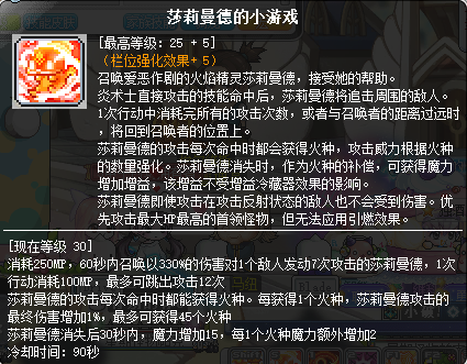 在打满攻击次数的情况下,30秒的BUFF时间内可以提高105点魔攻,可以打出一波质量不错的小爆发。
