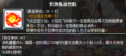 炎术士的V4技能,在前60秒为一个追踪型攻击技能,在60秒后根据攻击次数增加魔攻,维持30秒。