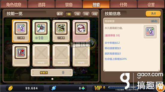 挂机党的主要加法,挂机的时候是不能使用技能的,所以在这里我们就需要先加被动技能,在挂机的不适用技能的前提下,也可以使用被动技能,被动技能主要以加血、加攻、加防御、加命中、加回避率等等为主,我们在选择被动技能的时候,尽量选择参考上述的属性。