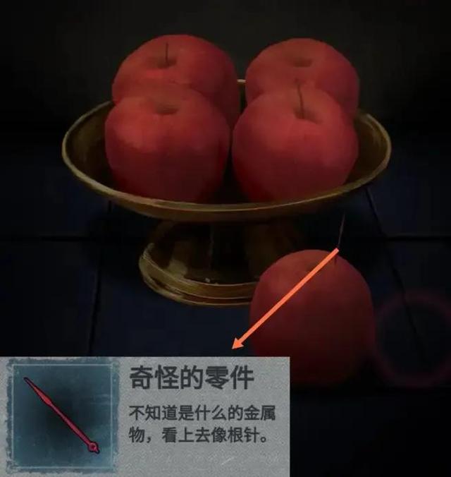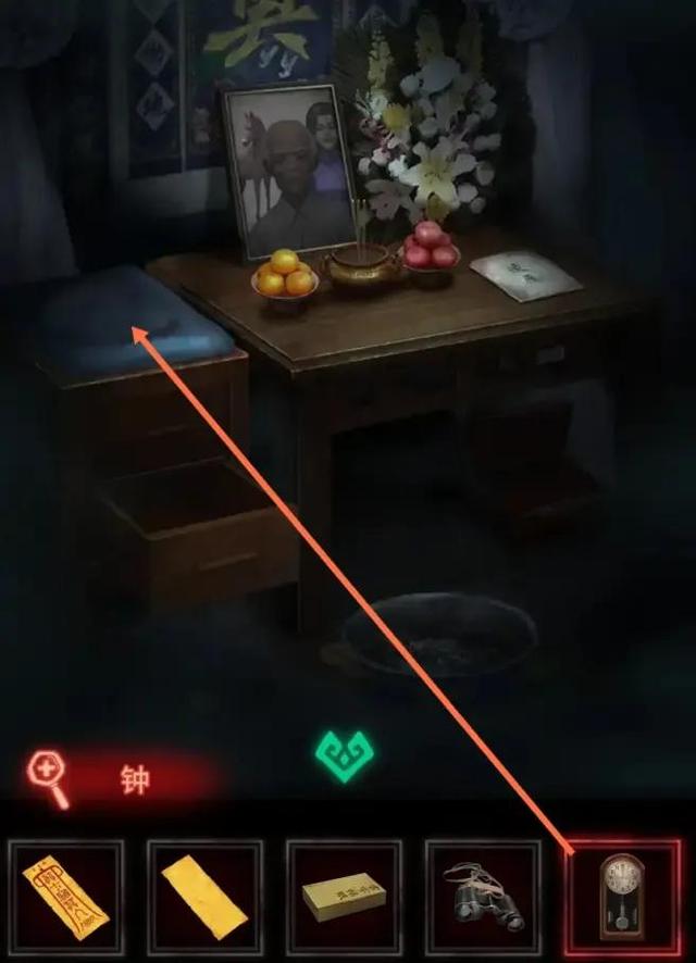走至四楼,点击老人遗像前的苹果,获得红色指针。