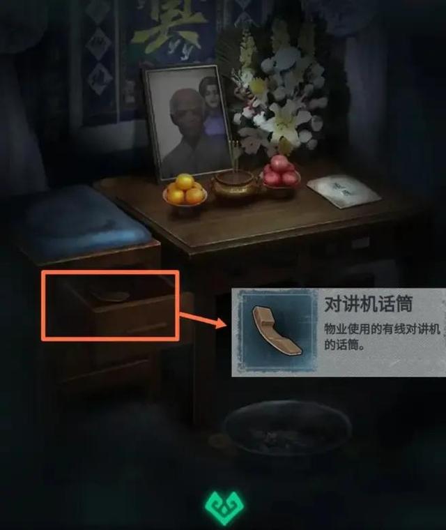 点燃后,可从灵堂左侧抽屉内获得对讲机话筒。
