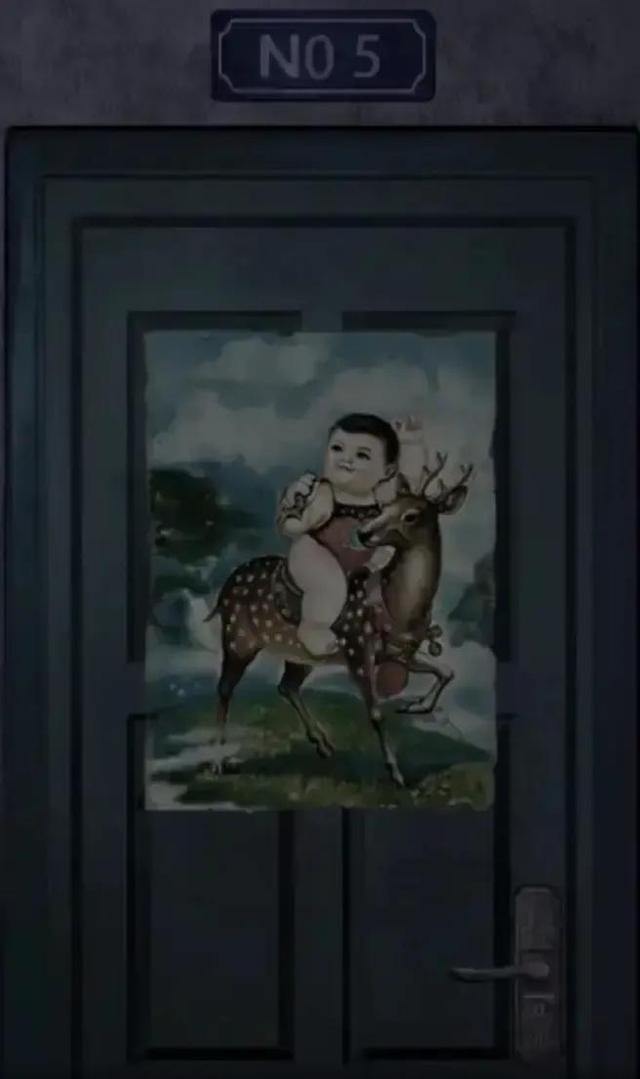 走至五楼,门口年画为鹿。