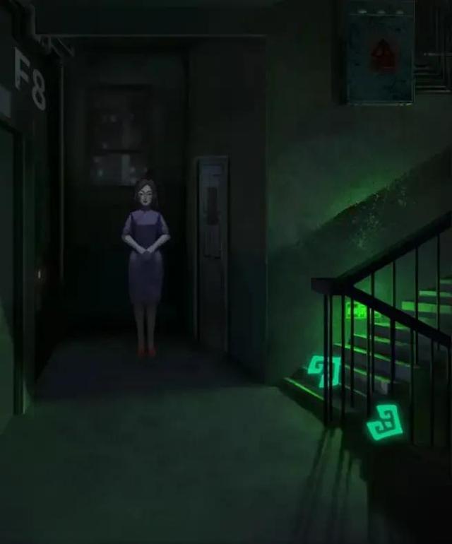 到八楼后大家要注意,这个女人好吓人……她走后拿出手机会发现这里看不到老人,因此不论点上还是点下都会回到一楼去,当然这个女人也在一楼等我们啦……我们一路追随她到四楼。