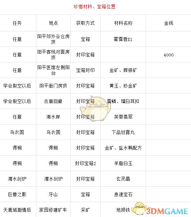 珍惜材料及宝箱位置分享