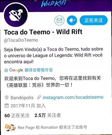 这是爆料博主的资料,现在国外都在预测【暗影岛】活动,并且关注他账号的都是手游团队的官方人员,新英雄内容为上期2.6版本预告英雄爆料内容~