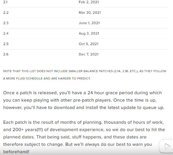 当然不是!!!官方在后面也说了这个列表不包括比较小的平衡性补丁更新,比如我们接触到的2.5a和2.5b这样的,因为这些小补丁遵循更灵活的时间表,并且更难预测!