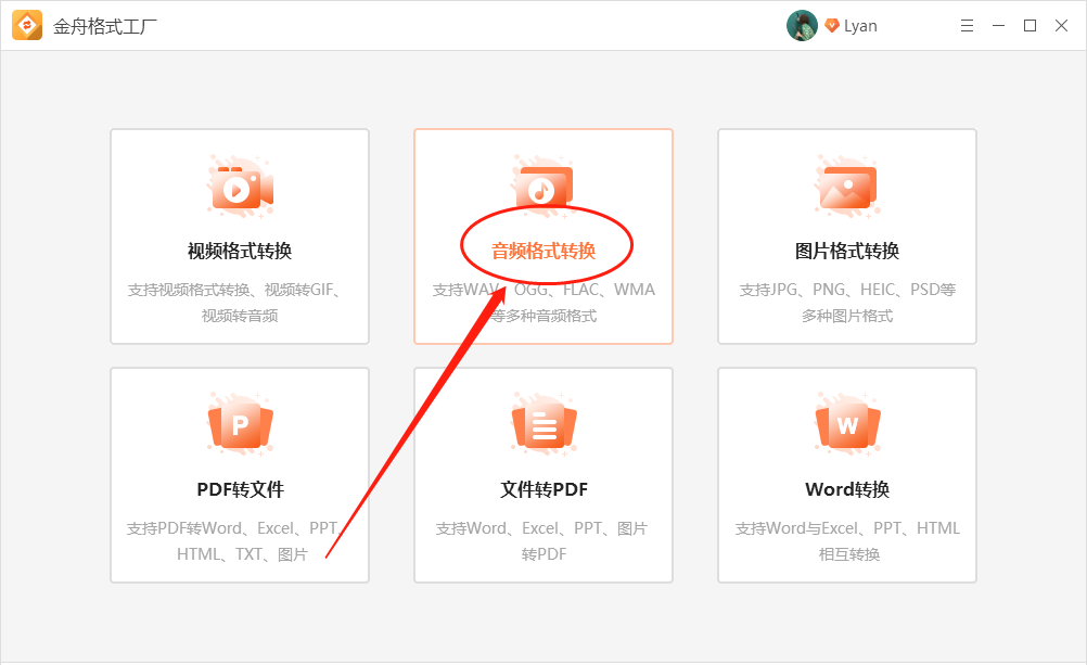 第一步、首先,打开需要用到的工具后,在以下界面中选择自己需要的功能选项“音频格式转换”;