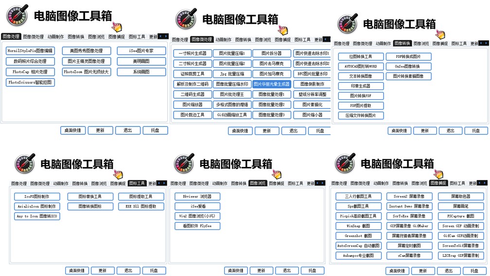 比如图片的批量处理、截图、录制动图等等,甚至还内置了许多知名的图像处理软件,比如美图秀秀、图片网精灵、Photozoom等。