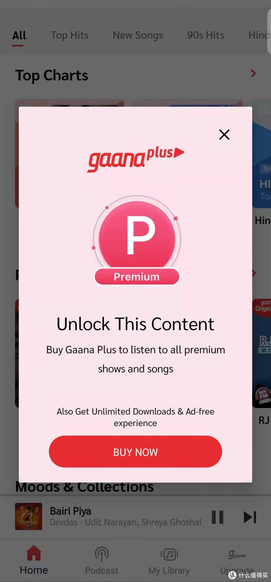 JioSaavn缺点:免费会员广告比较频繁,弹出的广告必须手动点击X来关闭。免费会员可以听所有的歌曲,但无法下载歌曲,收费会员才能下载歌曲和去广告。