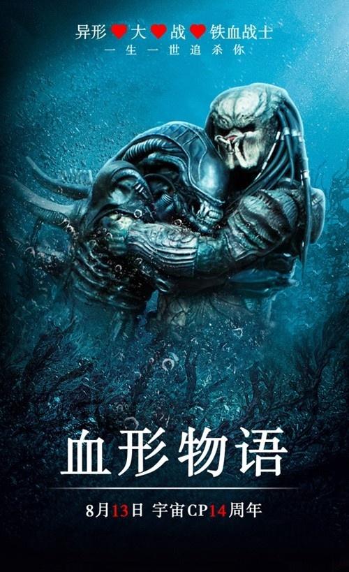 铁血战士温柔的环抱着“亲爱的”异形,让人忘记了他们曾经揪着对方互殴的场面。官博还巧用《水形物语》背景,片名处也改为《血形物语》。影迷们纷纷表示,“官方撒糖最为致命”